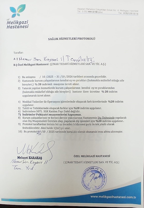 ANLAŞMA LİSTESİ EKTEDİR. % 20 ORANINDA İNDİRİM UYGULANACAKTIR.